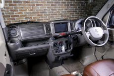 エブリイ専用に立体形成された黒木目調インテリアパネル。両面テープ付きで純正パネルに貼り付けるだけの簡単装着。車内のイメージをハードに仕上げます。