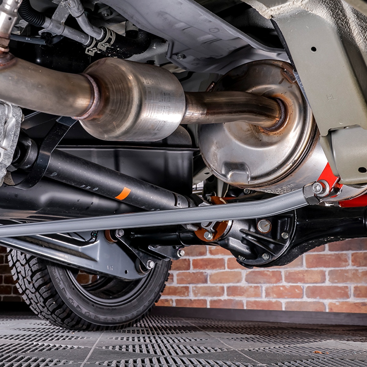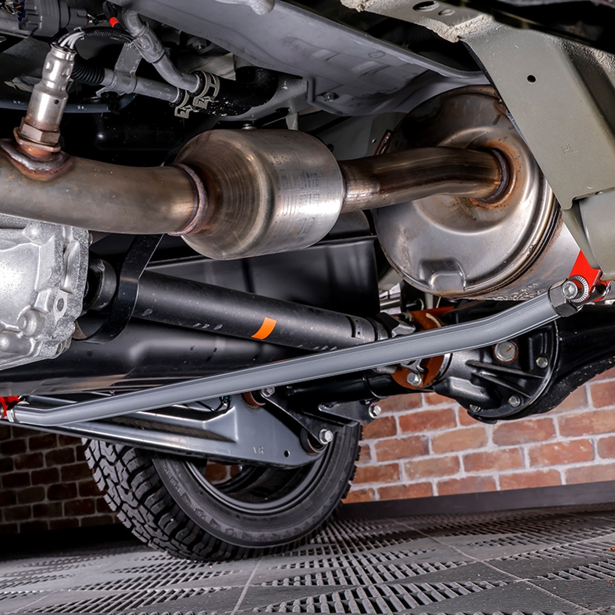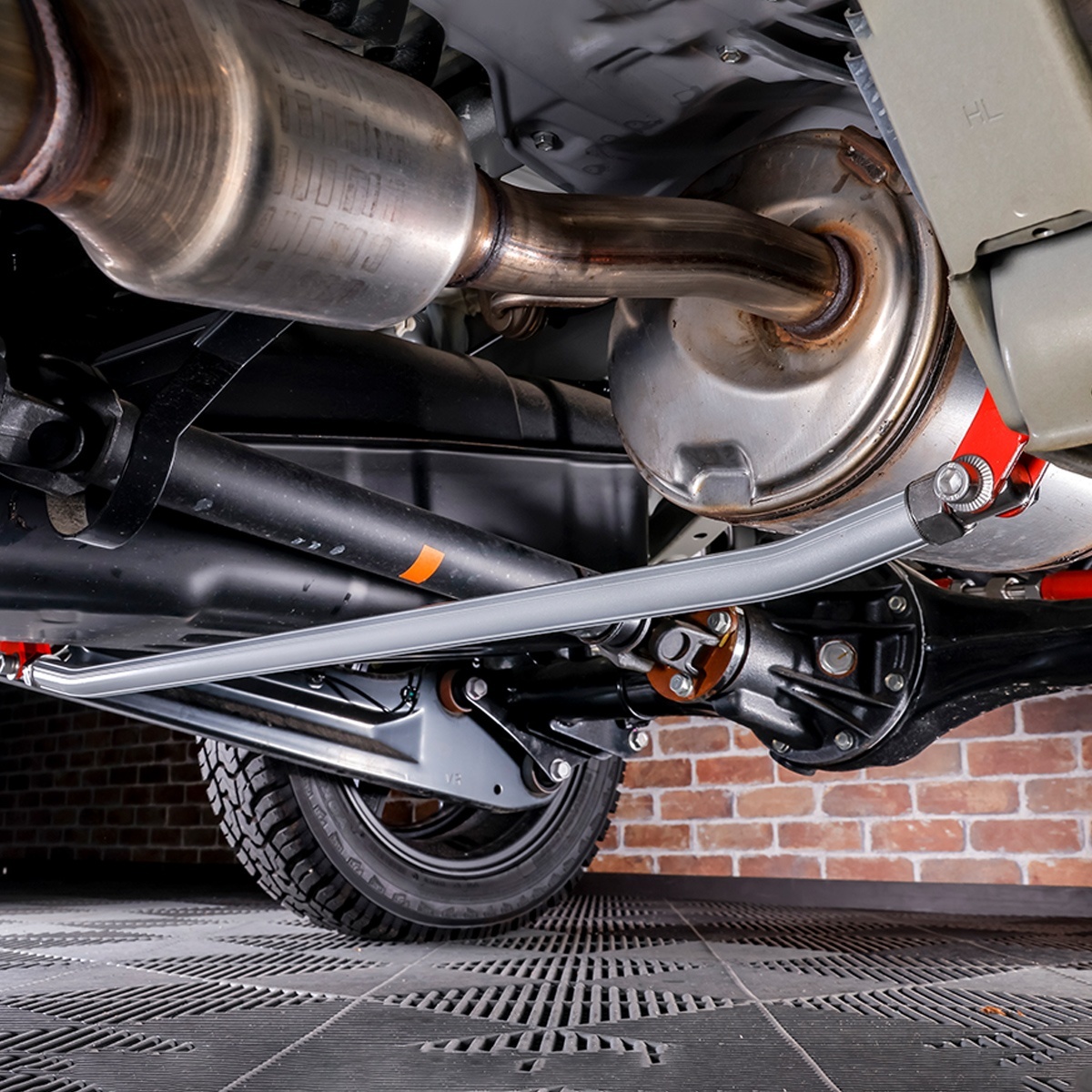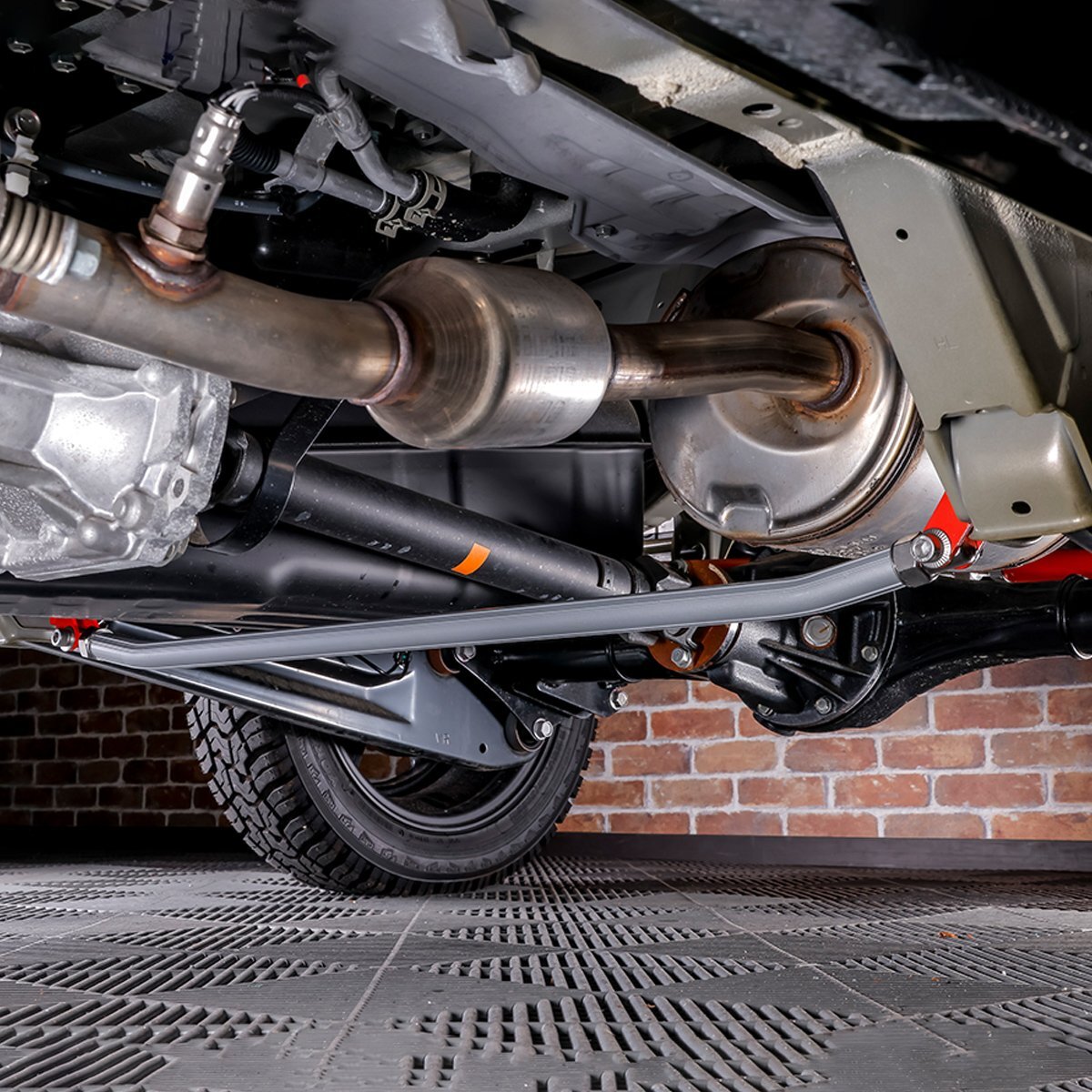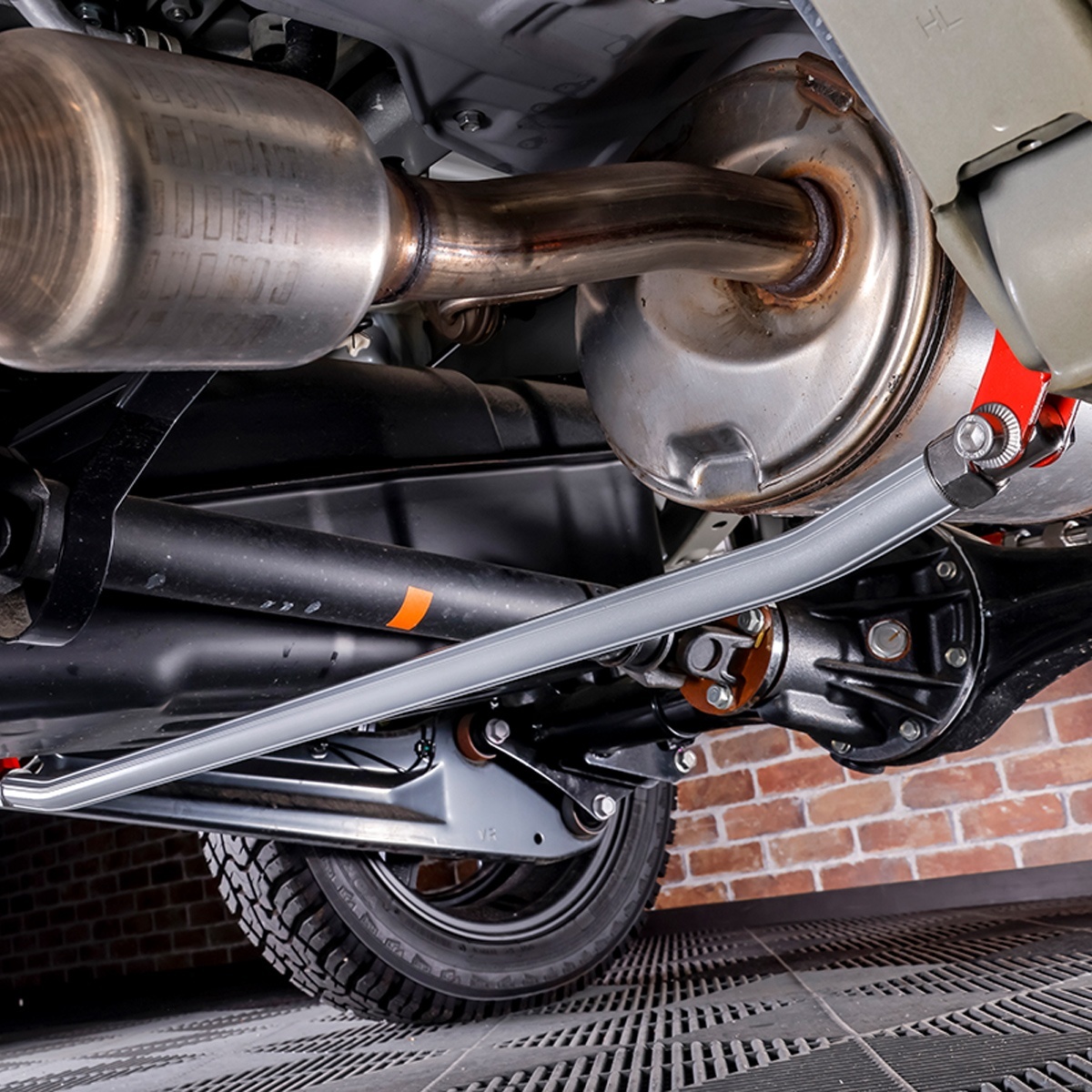 リアサスペンションの左右ロアアームを連結し、車体剛性を高める補強パーツです。走行中のボディや足回りの「ねじれ」を抑え、安定したハンドリングとコーナリング性能を実現します。