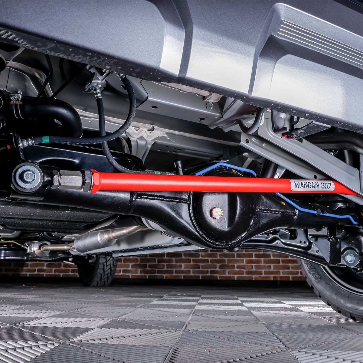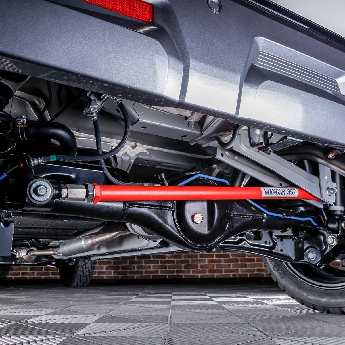 ローダウン時・リフトアップ時に起こる車軸の左右ずれをしっかり補正し、走行性能と見た目のバランスを両立する全長調整式ラテラルロッド。