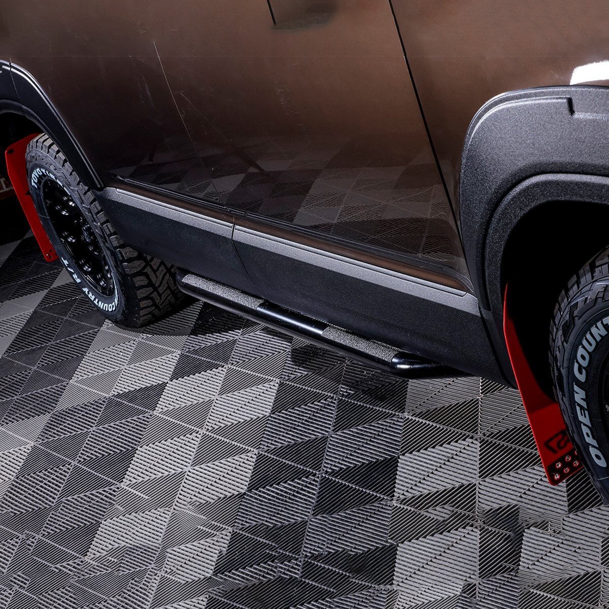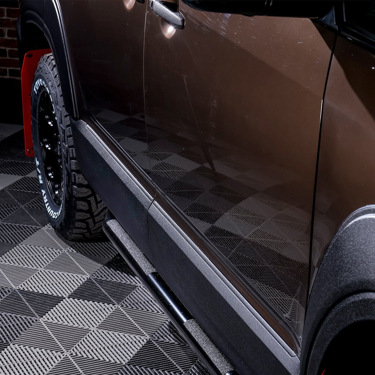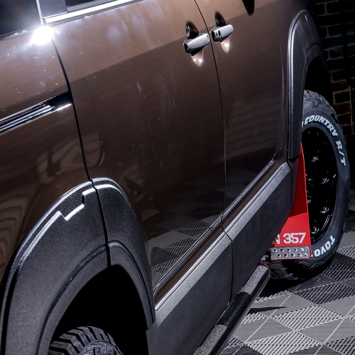 サイドビューに力強さを与えるだけでなく、悪路走行やアウトドアシーンでの飛び石や障害物からボディ下部をガードします。実用性とドレスアップを両立したアイテムです。