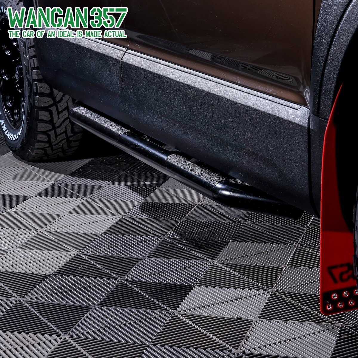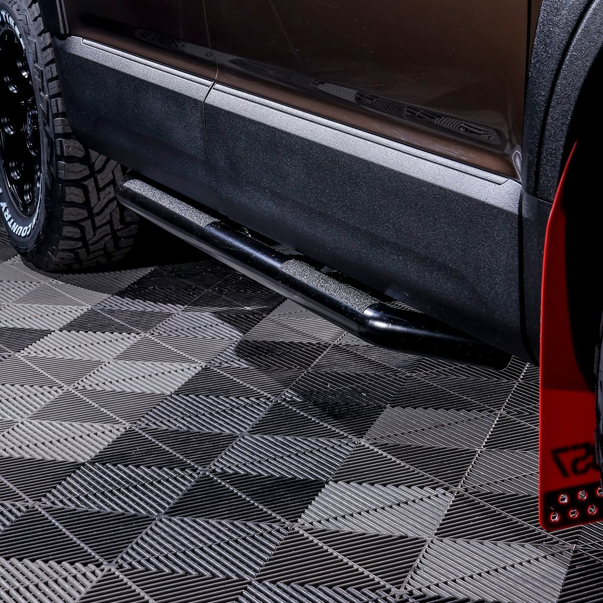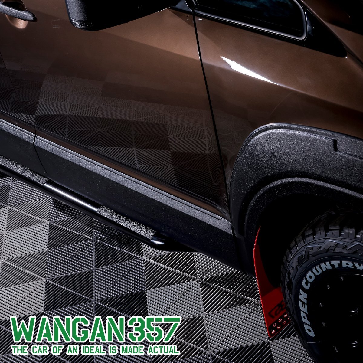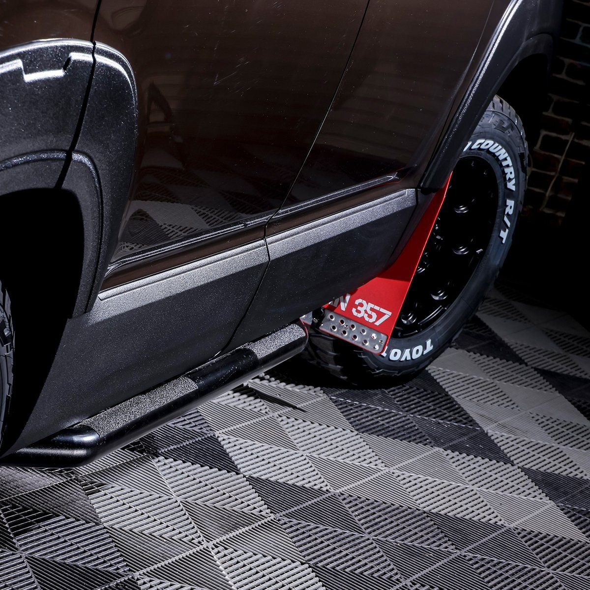 サイドビューに力強さを与えるだけでなく、悪路走行やアウトドアシーンでの飛び石や障害物からボディ下部をガードします。実用性とドレスアップを両立したアイテムです。